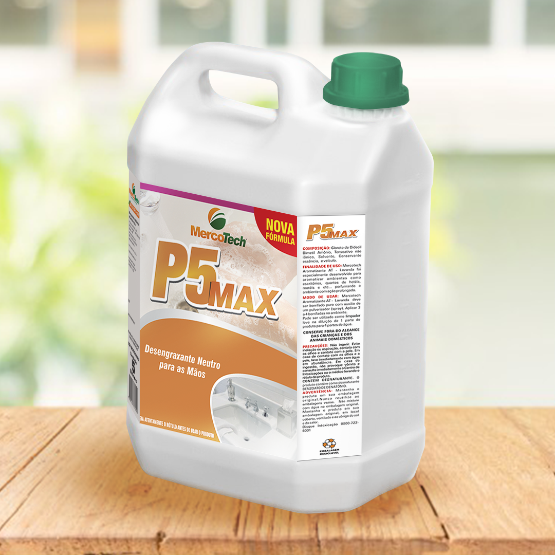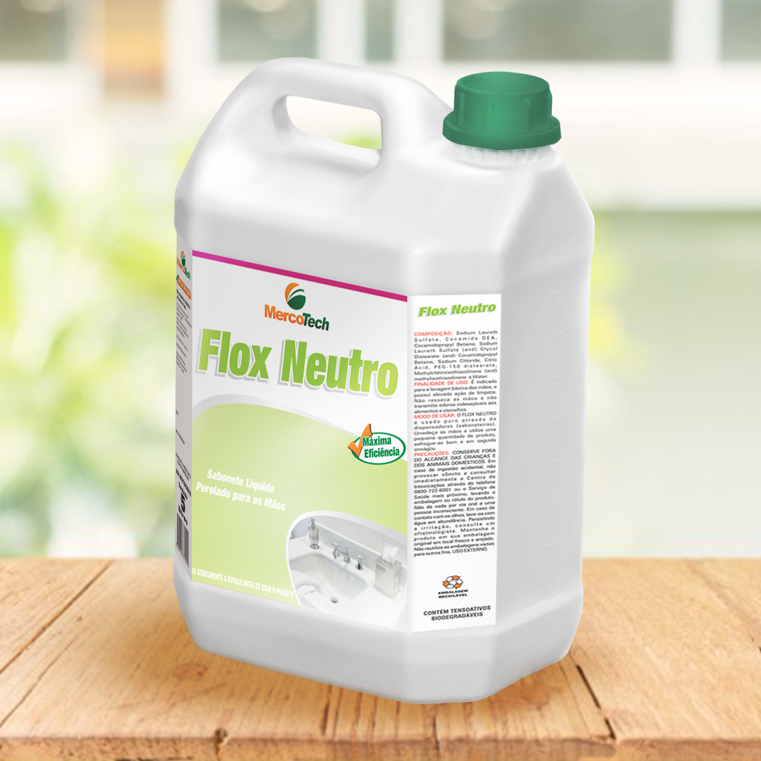 Sabonete líquido neutro para mãos. Embalagens de 5 e 20 L. Diluição: puro.